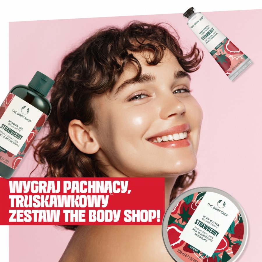 Do wygrania są aż 3 truskawkowe zestawy, zawierające masło do ciała, żel pod prysznic oraz krem do rąk.