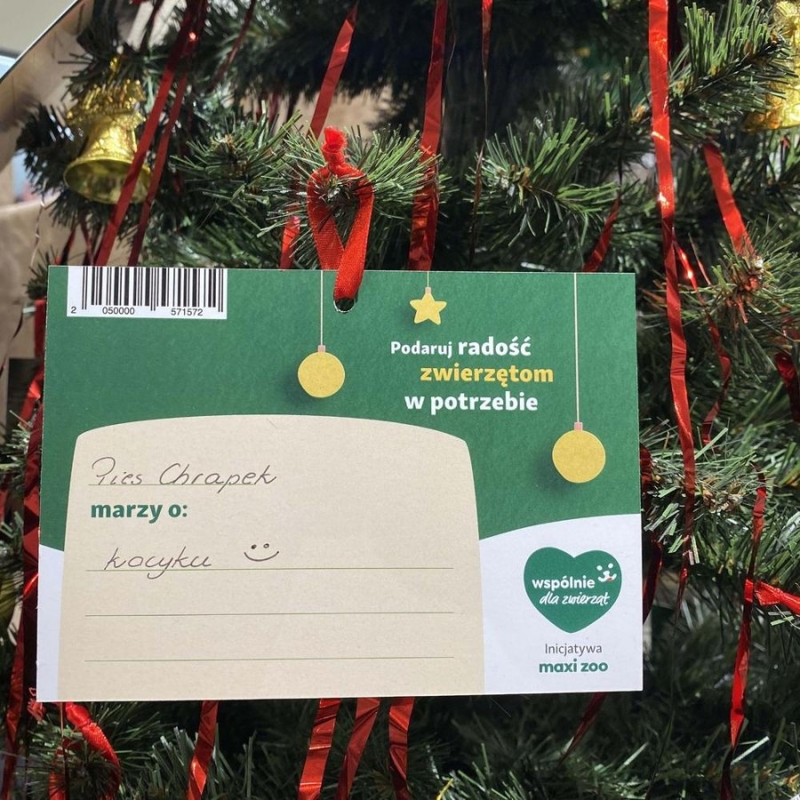 Jak co roku, w sklepach Maxi Zoo w całej Polsce w okresie świątecznym stanęły choinki przystrojone w niecodzienny sposób: kartkami z marzeniami potrzebujących zwierząt. Każdy klient odwiedzający sklep mógł wybrać kartkę, kupić produkty z listy i zostawić je pod świątecznym drzewkiem. Pracownicy Maxi Zoo zadbali, by wszystkie prezenty trafiły do schronisk, fundacji i organizacji pomagających zwierzętom, a za ich pośrednictwem do potrzebujących pupili. Zebrane dary to głównie wysokiej jakości karma, koce, zabawki i akcesoria, które pomogą zwierzętom przetrwać zimowy czas. W tym roku dzięki hojności i zaangażowaniu klientów Maxi Zoo udało się spełnić marzenia aż 27 218 zwierzaków