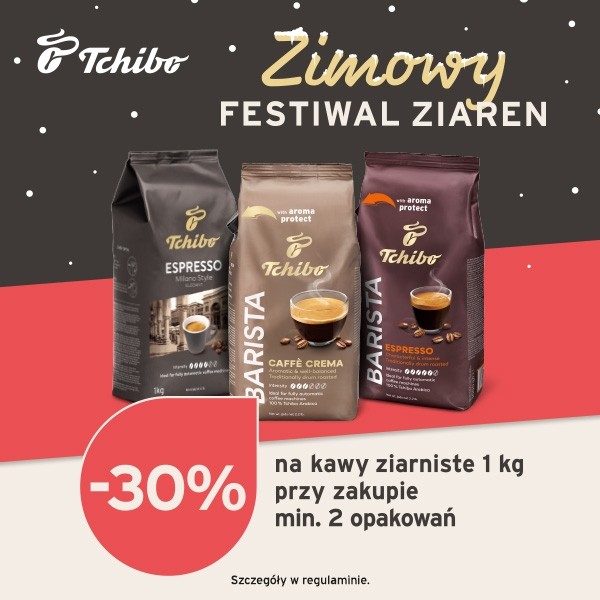 Przygotuj się na prawdziwą kawową ucztę, teraz 30% rabatu na kawy ziarniste 1kg przy zakupie min. 2 opakowań. Bez względu na to, czy wolisz delikatną nutę czekolady, czy też aromaty prażonych orzechów lub owoców tropikalnych w Tchibo znajdziesz swój smak! Szczegóły w regulaminie u doradcy.